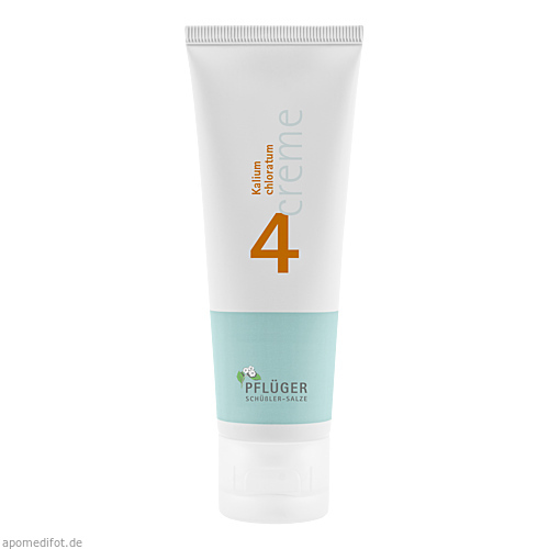 Biochemie Pflüger® Creme Nr. 4 Kalium chloratum, Zusammensetzung: 10 g Creme enthalten: Wirkstoff: Kalium chloratum Trit. D4 0,1 g. Sonstige Bestandteile: Benzylalkolhol, Cetylpalmitat (Ph. Eur.), Cetylstearylalkohol (Ph. Eur.), Natriumcitrat, Octyldodecanol (Ph. Eur.), Polysorbat 60, Propylenglycol, Sorbitanstearat, gereinigtes Wasser.