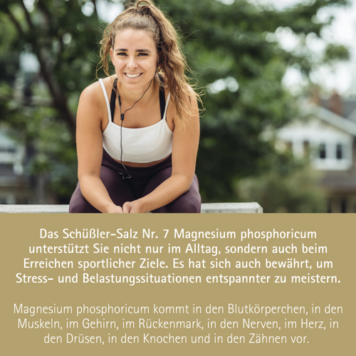 Das Schüßler-Salz Nr. 7 Magnesium phosphoricum von Pflüger ist das Salz der Nerven und Muskeln. Es unterstützt Sie nicht nur im Alltag, sondern auch bei der Erreichung sportlicher Ziele. Auch um Belastungssituationen und Stress entspannter meistern und Ruhe bewahren zu können, hat es sich bewährt.