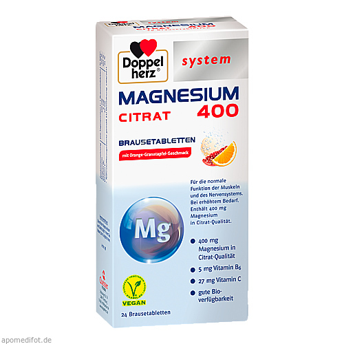 DOPPELHERZ Magnesium 400 Citrat system Brausetabl. 24 St