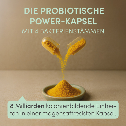 + Eigenschaften – die magensaftresistente Kapsel ist frei von Gluten und Titandioxid, sie muss nicht kühl gelagert werden