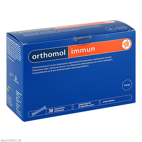 Orthomol Immun® ist ein diätetisches Lebensmittel für besondere medizinische Zwecke (bilanzierte Diät). Orthomol Immun® zur diätetischen Behandlung von nutritiv bedingten Immundefiziten (z.B. bei rezidivierenden Atemwegsinfekten).
