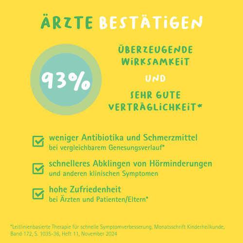 Mittelohrentzündungen gehören zu den Erkrankungen, mit denen Kinder (insbesondere Säuglinge und Kleinkinder) und damit auch deren Familien besonders häufig konfrontiert werden. Häufig ist eine antibiotische Therapie nicht notwendig. Wenn Kinder unter einer Mittelohrentzündung leiden, die Ohren schmerzen und entzündet sind, brauchen sie eine Behandlung, die hilft, wie ein guter Freund. Weil sie effektiv die Beschwerden lindert und ursächlich gegen die zugrundeliegende Entzündung wirkt – auf eine kindgerechte, sanfte Art und Weise.
