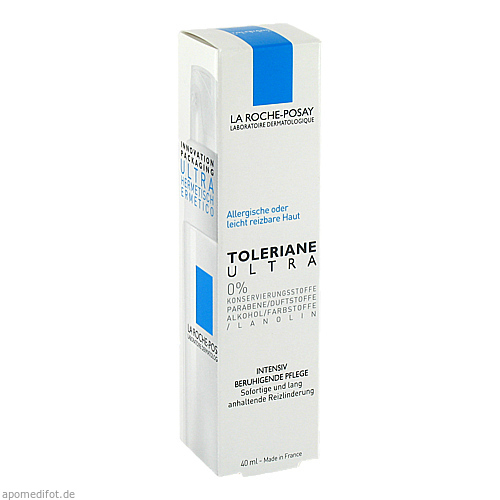 Toleriane Ultra ist eine Intensivpflege mit hautberuhigendem Thermawasser aus La Roche-Posay, die aktiv die Empfindlichkeit überempfindlicher oder allergischer Haut reduziert und Probleme wie Rötungen, Brennen und Juckreiz mildert. Die exklusive Verbindung von Neurosensine und hautberuhigendem Thermalwasser aus La Roche-Posay beruhigt die Haut und schenkt ihr lang anhaltendes Wohlbefinden.