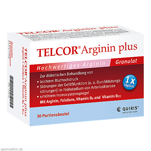 Pflanzliches Arginin, wie es mit Telcor® Arginin plus (rezeptfrei) zugeführt wird, kann die körpereigene Blutdruckregulation und die Durchblutung positiv unterstützen. Eine gute Versorgung mit dem natürlichen Eiweißbaustein Arginin ist daher für gesunde Gefäße, ein starkes Herz sowie geistige Vitalität von großer Bedeutung.